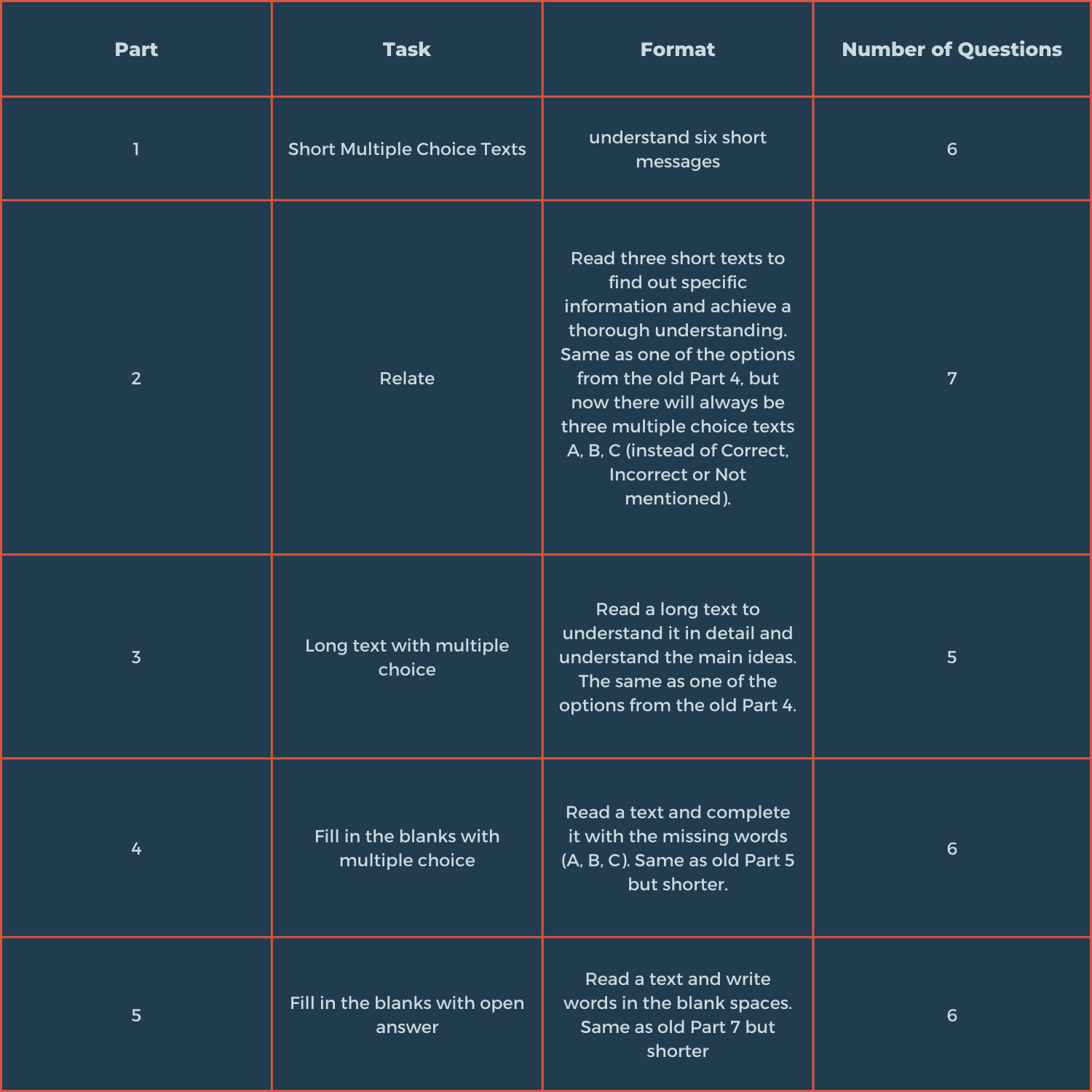Writing has 2 parts, in the first you must write a message in response to the information that has been provided. Candidates must write 25 words or more instead of 25–35 words as was previously done before the exam format changed.