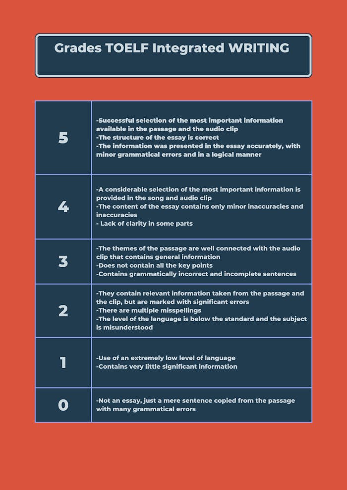 As mentioned above, the difficulty in the Writing section of the TOEFL test will depend on how the written academic text is organized. The coherence, the variety of vocabulary, and the connection of the ideas that together make up an essay with a good common thread and clear answers.